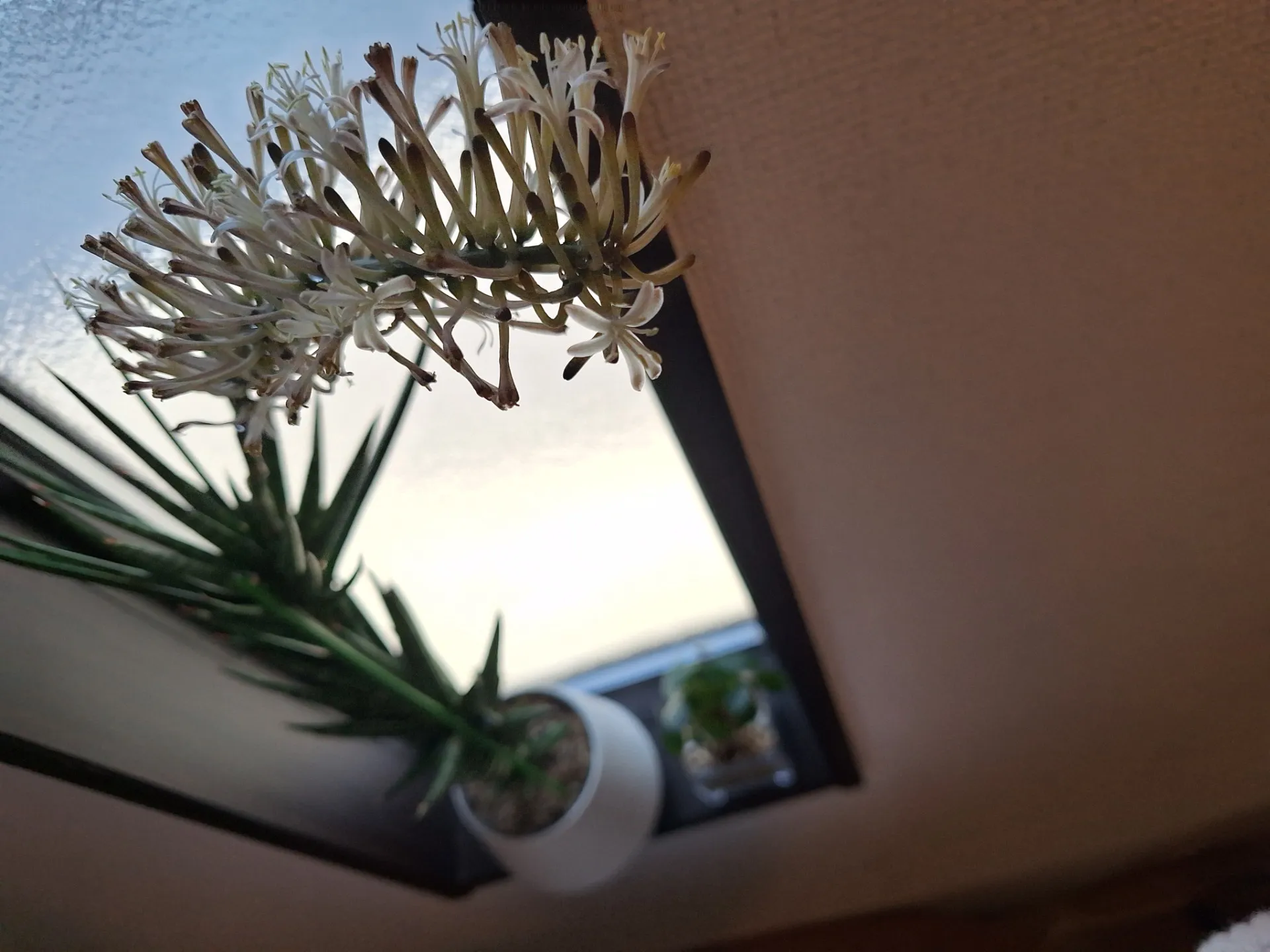サンスベリアの白い花が初めて咲いた🌸